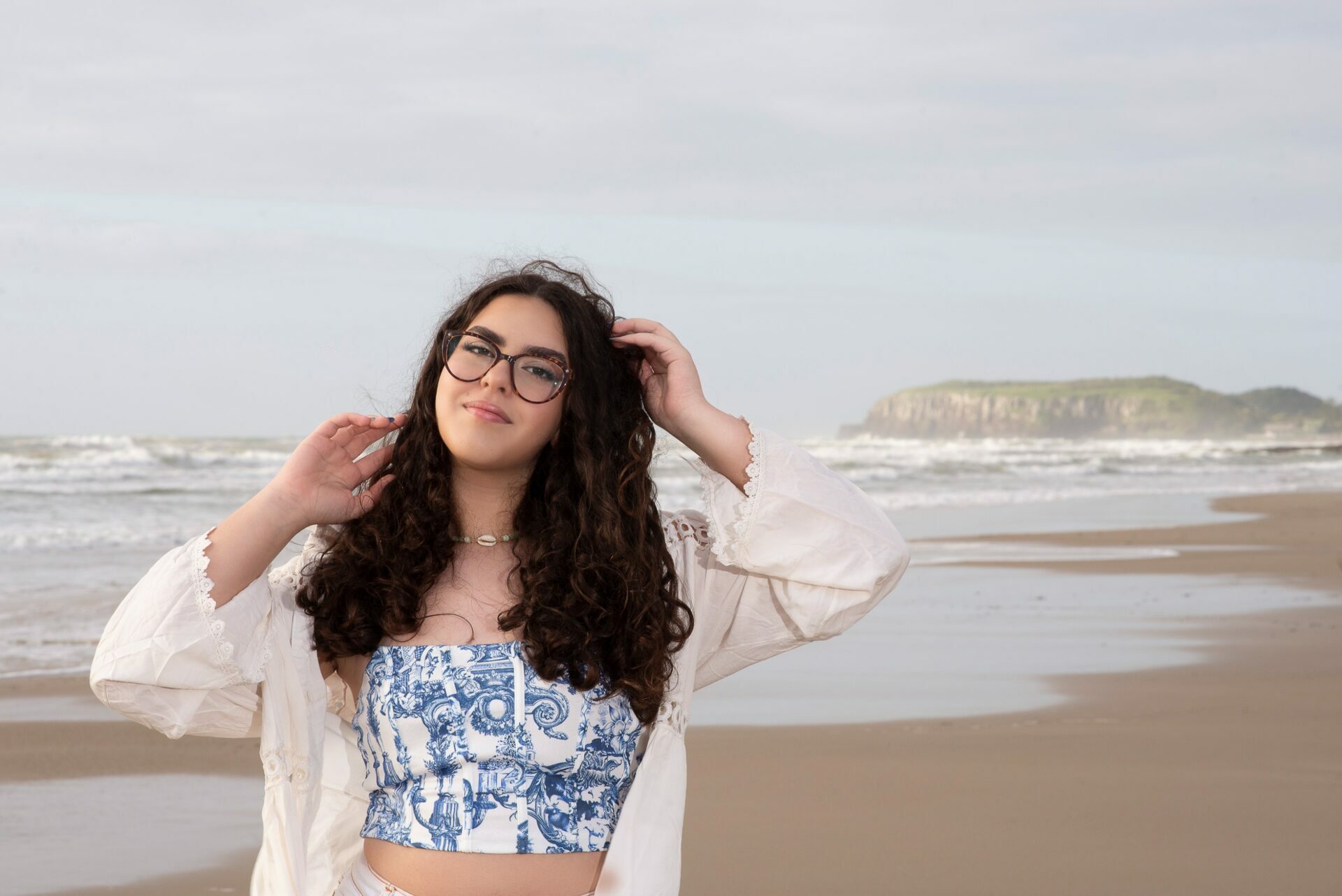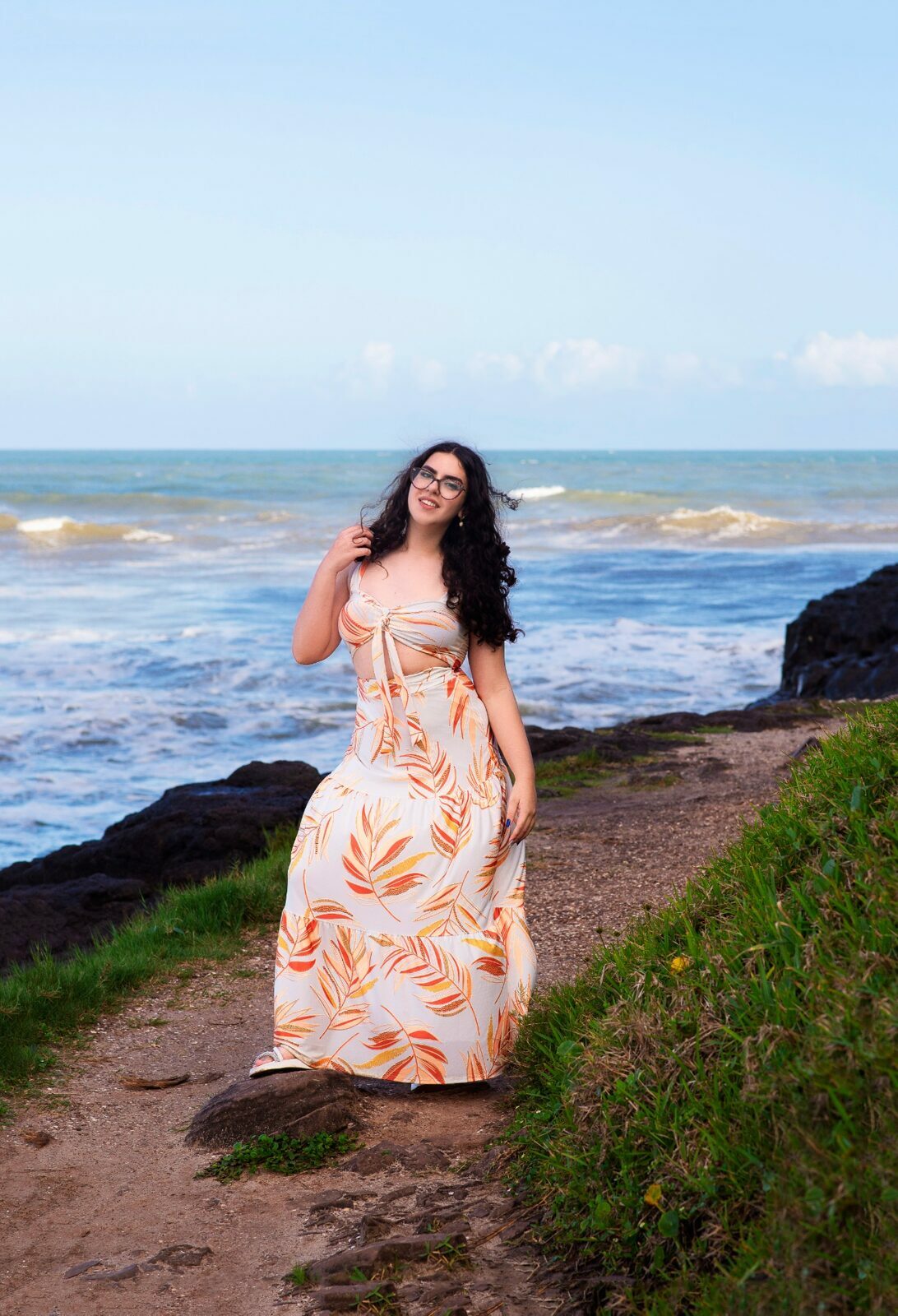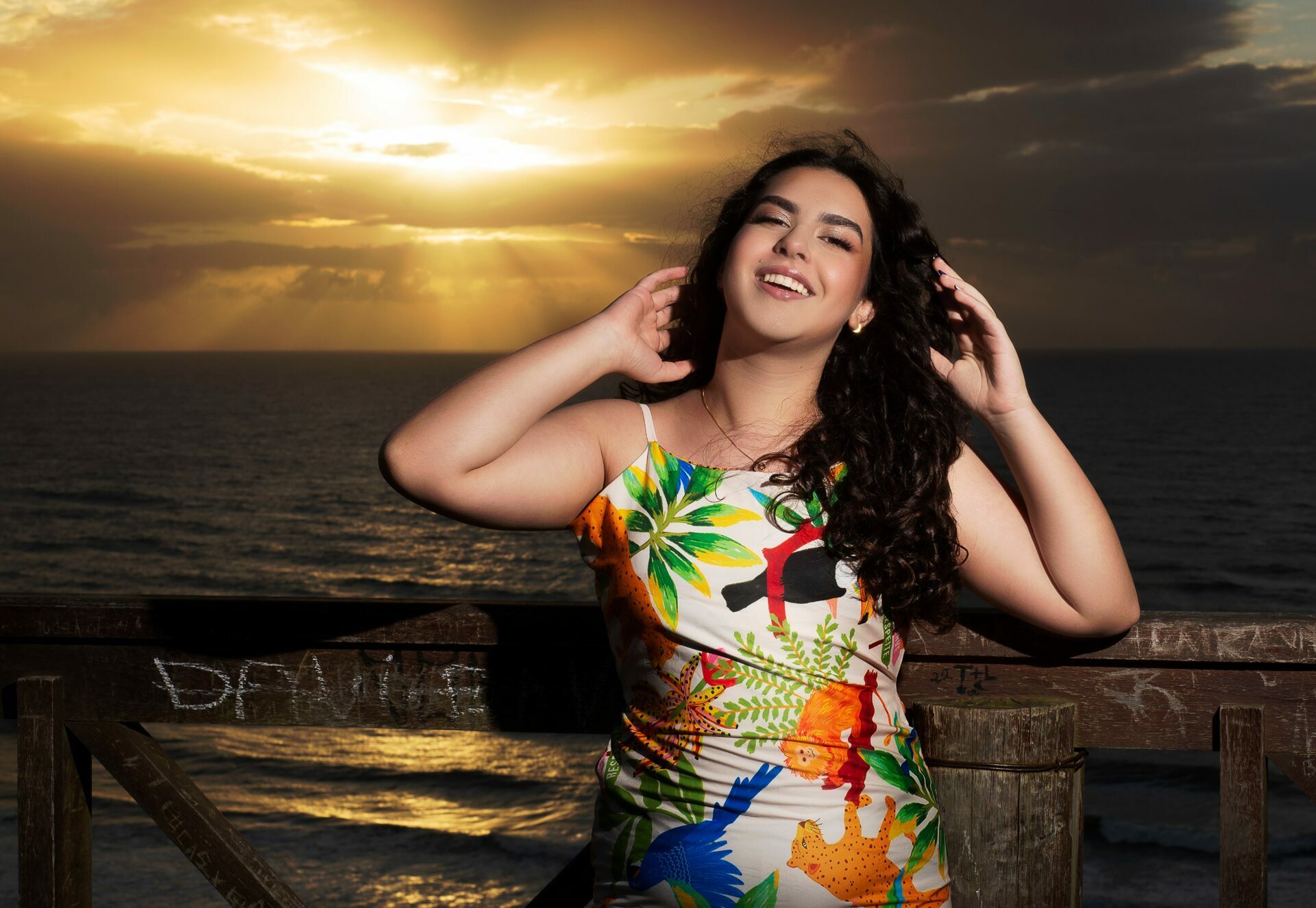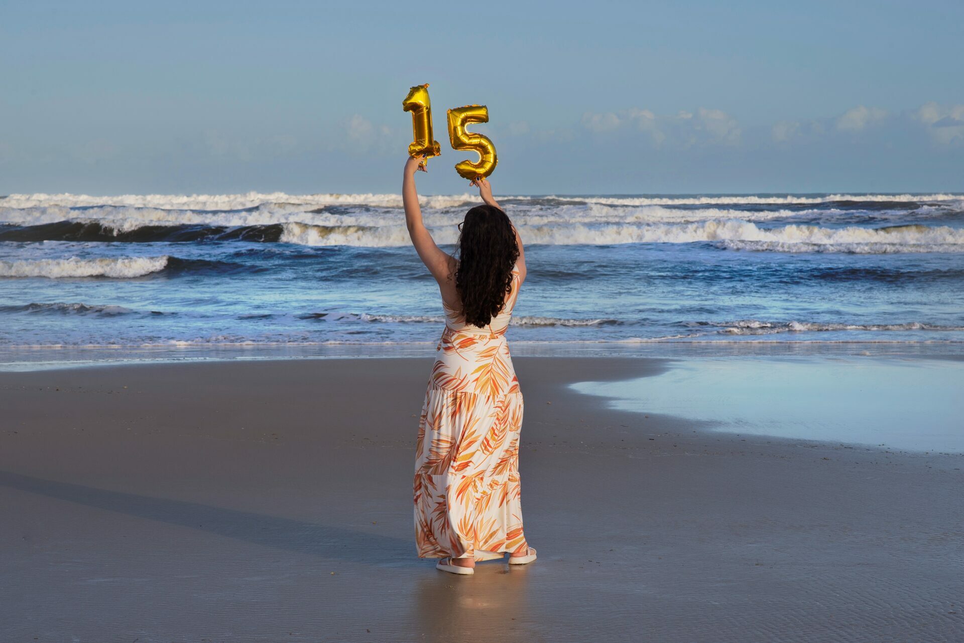 Sol, mar e falésias como plano de fundo de fotos de 15 anos.