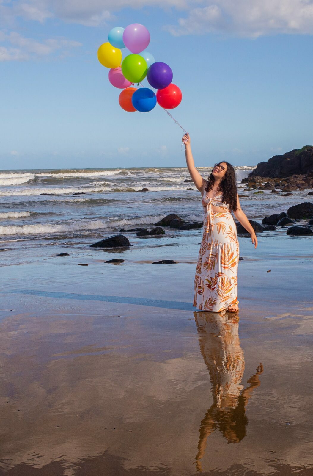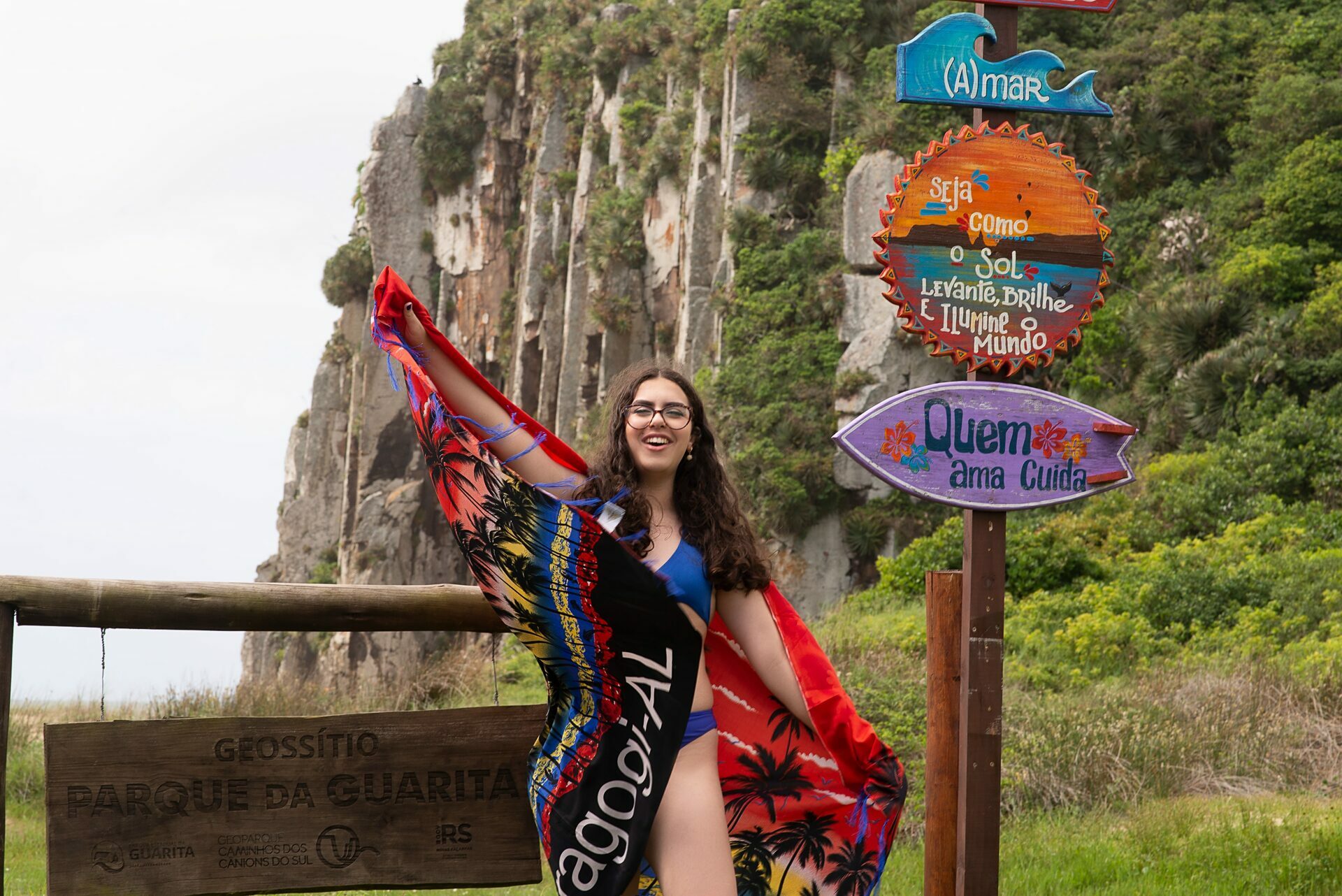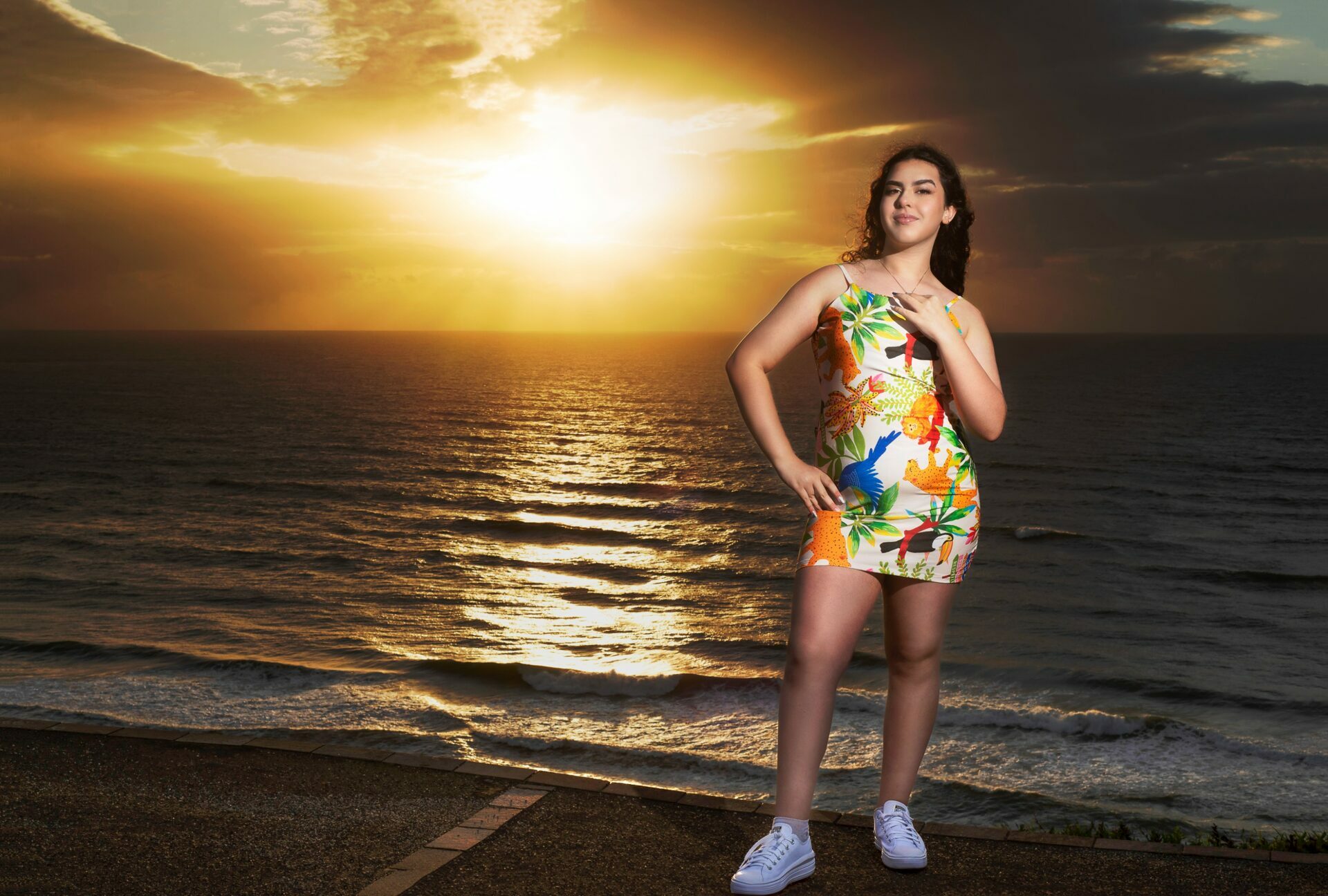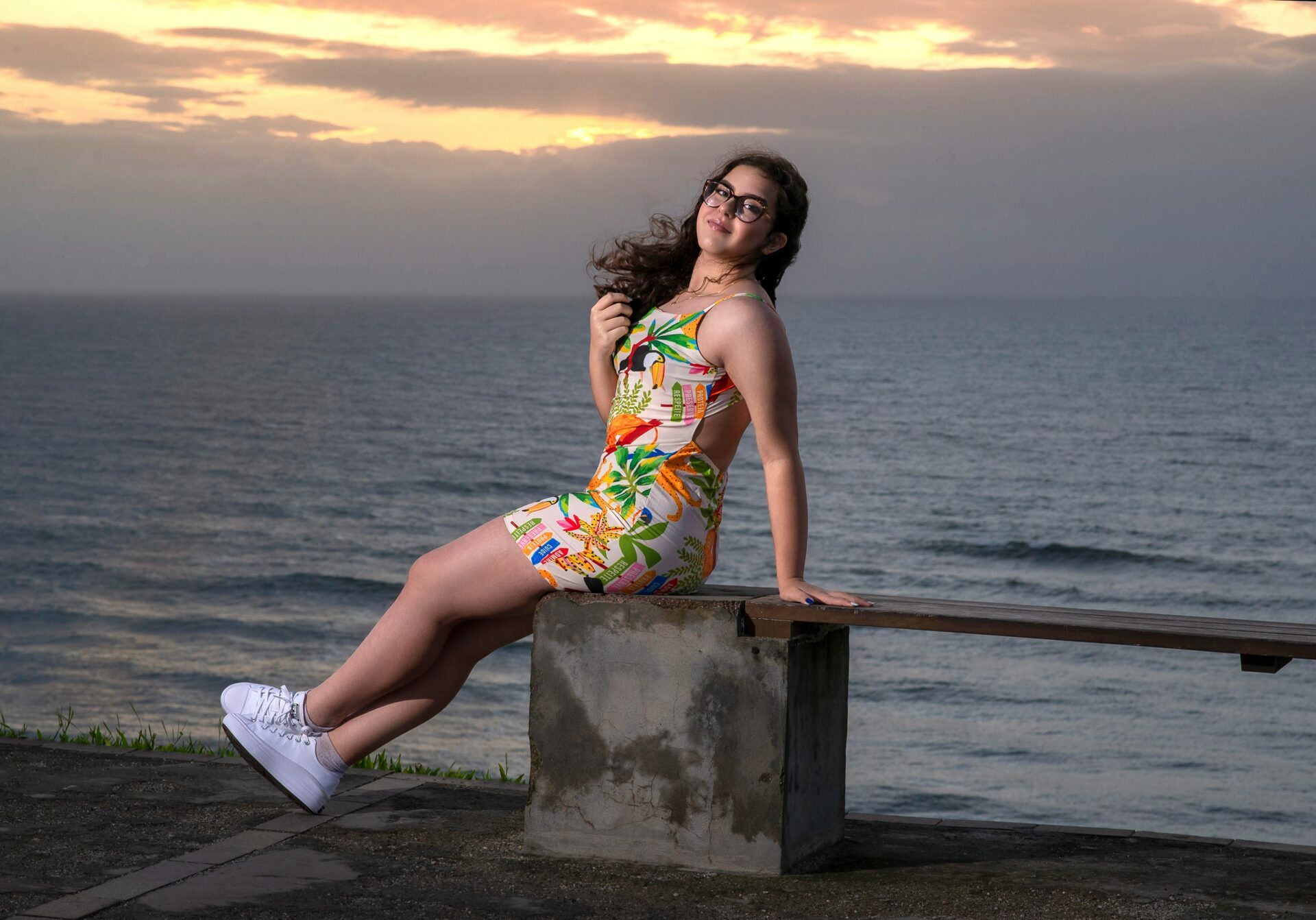 Sol, mar e falésias como plano de fundo de fotos de 15 anos.