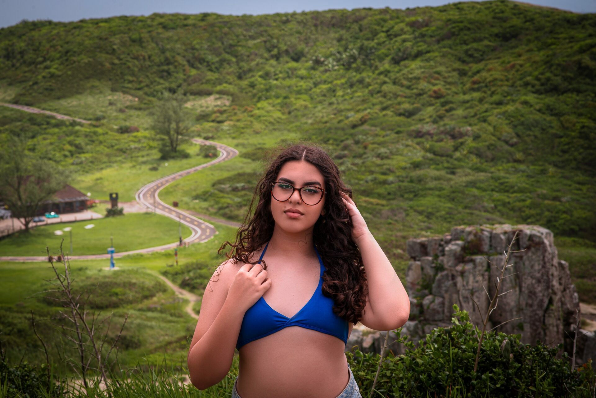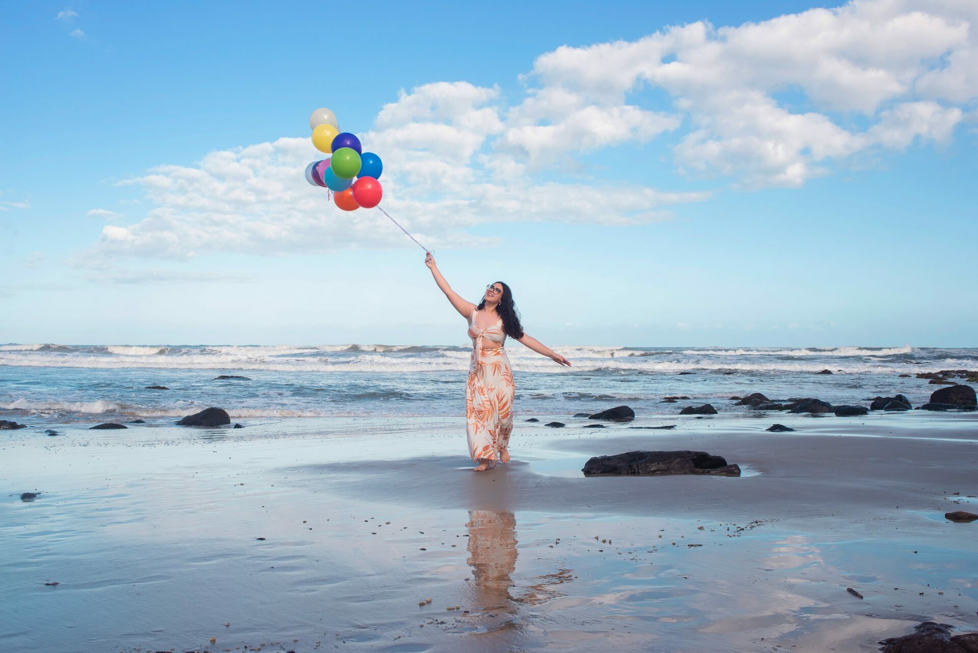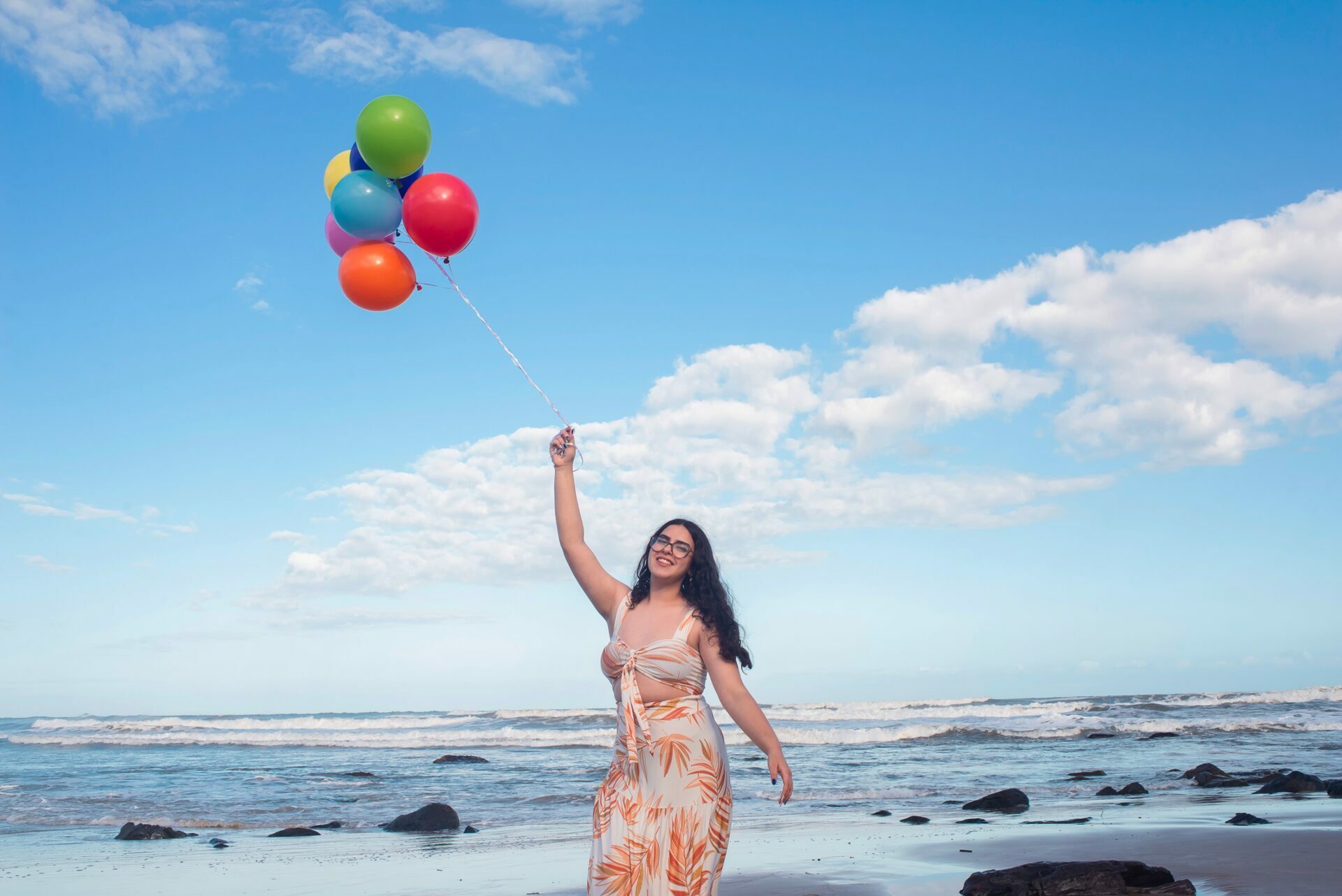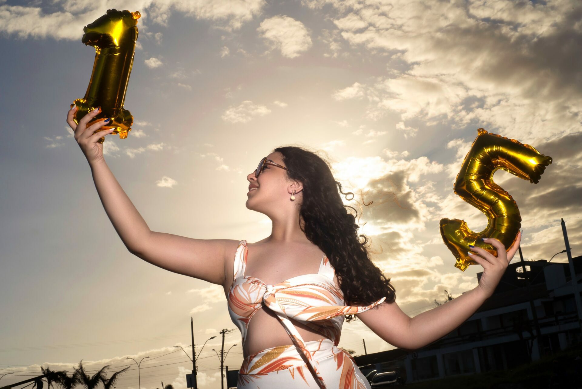 Sol, mar e falésias como plano de fundo de fotos de 15 anos.